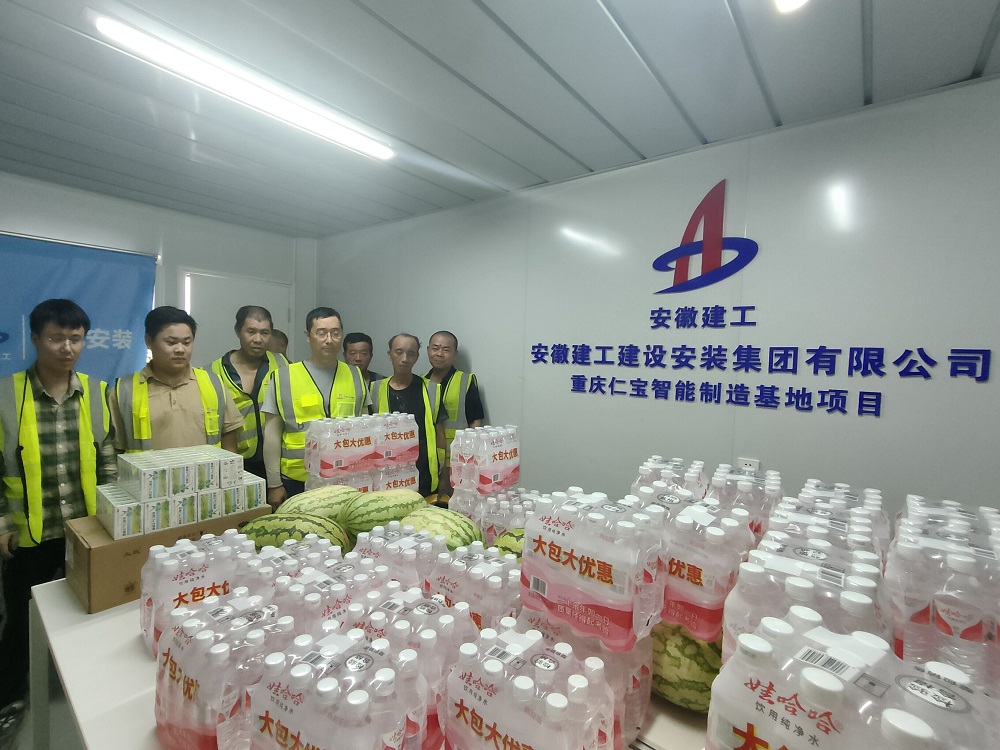 此次慰問(wèn)先后來(lái)到臨湖智能制造產(chǎn)業(yè)園、花園大道、岳西中學(xué)、安徽建工鋼結構綠色智造(六安)、新橋機場(chǎng)T2航站樓、新橋智能制造產(chǎn)業(yè)園、重慶中冶等項目施工一線(xiàn),將綠豆、白糖、西瓜、礦泉水、藿香正氣水等防暑降溫物資送到高溫下堅守崗位的一線(xiàn)員工手中。對他們的辛勤付出表示感謝,并反復叮囑大家要注意防暑降溫,合理安排施工和休息時(shí)間,確保施工安全?;顒?dòng)中,項目安全員還對現場(chǎng)工人進(jìn)行了夏季防暑降溫、中暑急救知識宣傳教育,有效提高了大家的自我保護意識和能力。