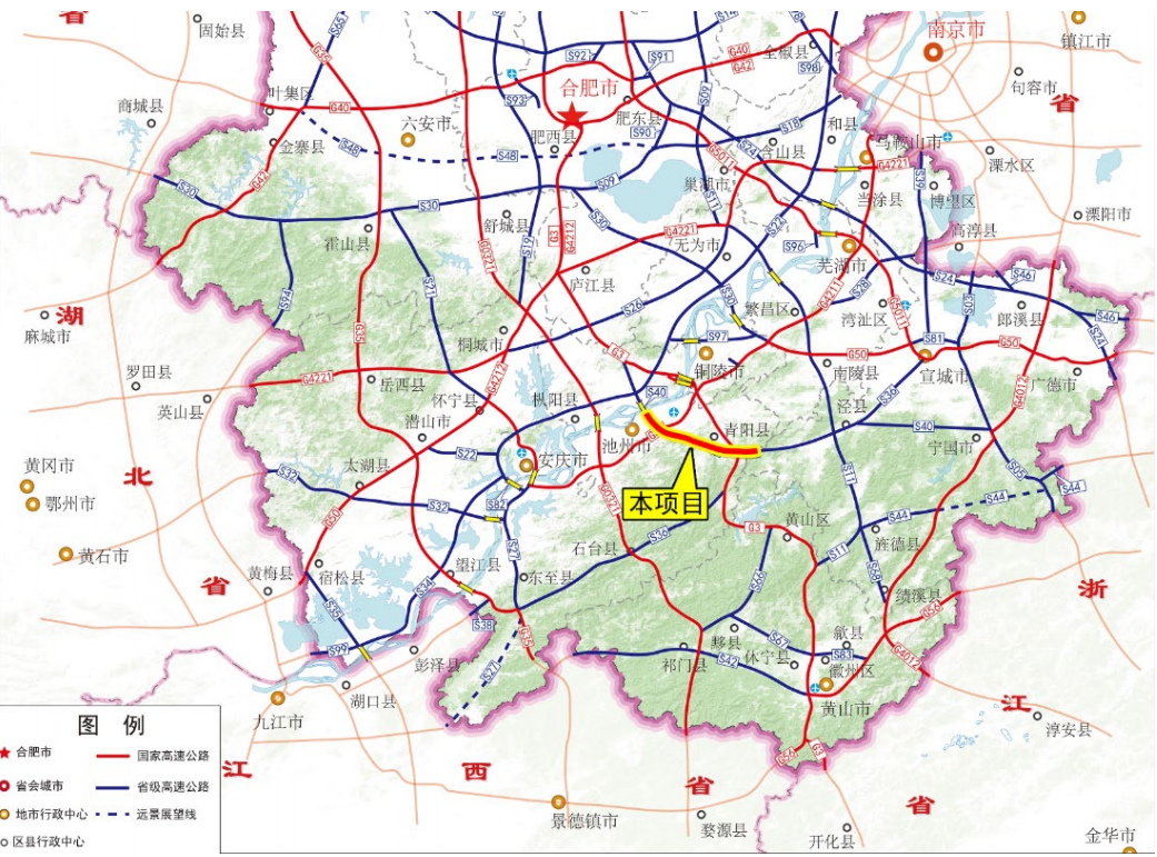 該項目是S40寧國至樅陽(yáng)高速公路的重要組成部分,同時(shí)項目終點(diǎn)處銜接的池州長(cháng)江公鐵大橋也是池州市“十四五”時(shí)期重點(diǎn)推進(jìn)的三條過(guò)江通道之一。項目路線(xiàn)起于涇縣與青陽(yáng)縣交界處接在建的涇青高速,終于池州長(cháng)江公鐵大橋南引橋處,路線(xiàn)全長(cháng)46.225公里,特許經(jīng)營(yíng)期預計為33年,其中建設期3年、運營(yíng)期(含收費期)暫定30年。