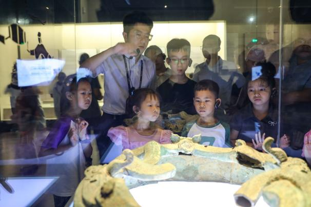 飯后,“小候鳥(niǎo)”們熱情不減,快樂(lè )奔赴安徽省博物院(新館)參觀(guān),緊緊跟隨者講解員的步伐,遨游在古皖大地的歷史長(cháng)河之中。商周青銅器、漢代畫(huà)像石、古代陶瓷器等一件件歷史文物、一幀幀歷史畫(huà)卷,訴說(shuō)著(zhù)過(guò)往的輝煌與滄桑,且館內采用高科技多媒體與游客互動(dòng),陳列的巖石標本、古生物化石令人感到震撼,充分激發(fā)了小朋友熱愛(ài)家鄉、探索科學(xué)的熱情。