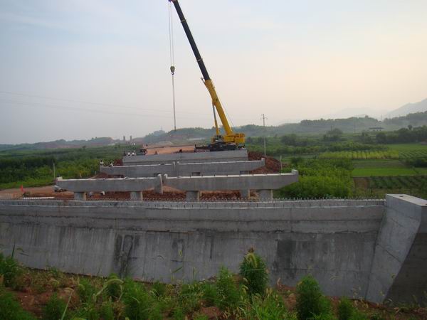 K5+300橋共三跨60片空心板梁,計劃3天內完成全橋板梁吊裝工作。第一片空心板梁吊裝工作的預期完成,為下一 步吊裝工作的依次進(jìn)行奠定了基礎。
