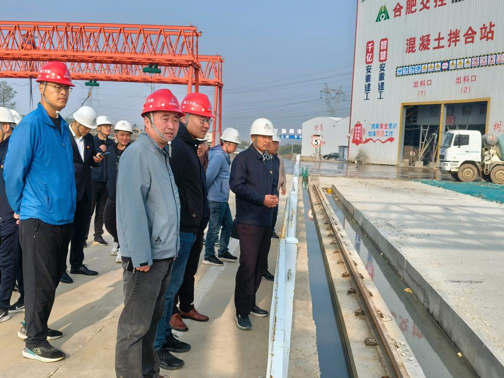 在S18寧合高速4標項目,合肥交投合寧高速公路有限公司黨支部書(shū)記黃華一行參觀(guān)了拌和站、預制梁場(chǎng),詳細了解了項目概況、生產(chǎn)進(jìn)度和重難點(diǎn)工作。S18寧合高速項目黨支部書(shū)記、項目經(jīng)理肖昌樹(shù)就梁場(chǎng)布局、施工現狀、節點(diǎn)計劃、機械設備及近期工作安排進(jìn)行業(yè)務(wù)匯報,他指出推進(jìn)“黨建進(jìn)工地”,是新時(shí)代加強基層黨建工作,推動(dòng)工程項目高質(zhì)量發(fā)展的重要舉措,將黨建工作深入融入工程建設工作中,不僅能提升項目管理的科學(xué)化水平,更能激發(fā)廣大黨員職工的工作熱情和創(chuàng )造力,為項目工程建設注入強大動(dòng)力。