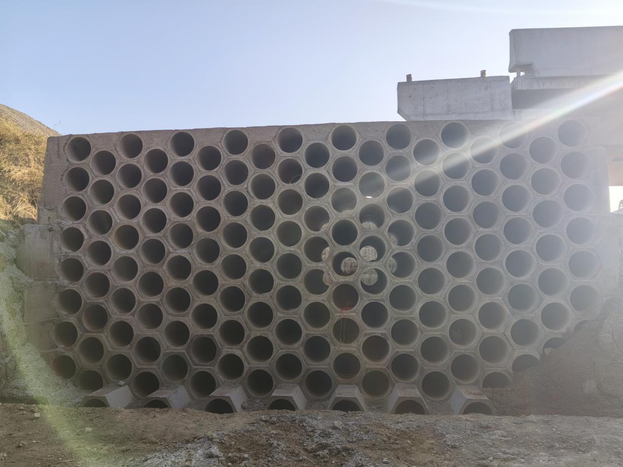 項目在施工過(guò)程中積極參與科研創(chuàng )新,先后進(jìn)行了蜂窩路基的結構、材料與施工關(guān)鍵技術(shù)課題的研究和坡改平生態(tài)護坡新工藝。蜂窩路基結構的研發(fā)既解決了土源問(wèn)題,又推進(jìn)了固廢資源化。坡改平生態(tài)護坡研發(fā)出了一種新型生態(tài)護坡技術(shù),使其既具有老式護坡磚施工簡(jiǎn)單、工程造價(jià)低的優(yōu)點(diǎn),又能克服水土保持效果差的弊端。通過(guò)多方案的比選論證,提出新型的 “坡改平”生態(tài)護坡磚技術(shù)(以下稱(chēng) “新型護坡磚”),利用“坡改平”護坡磚的特殊結構,將整個(gè)坡面分解為一個(gè)個(gè) “小平面”,以“小平面”土體的穩定,實(shí)現整個(gè)坡面的穩定,從而解決坡面土壤流失問(wèn)題。