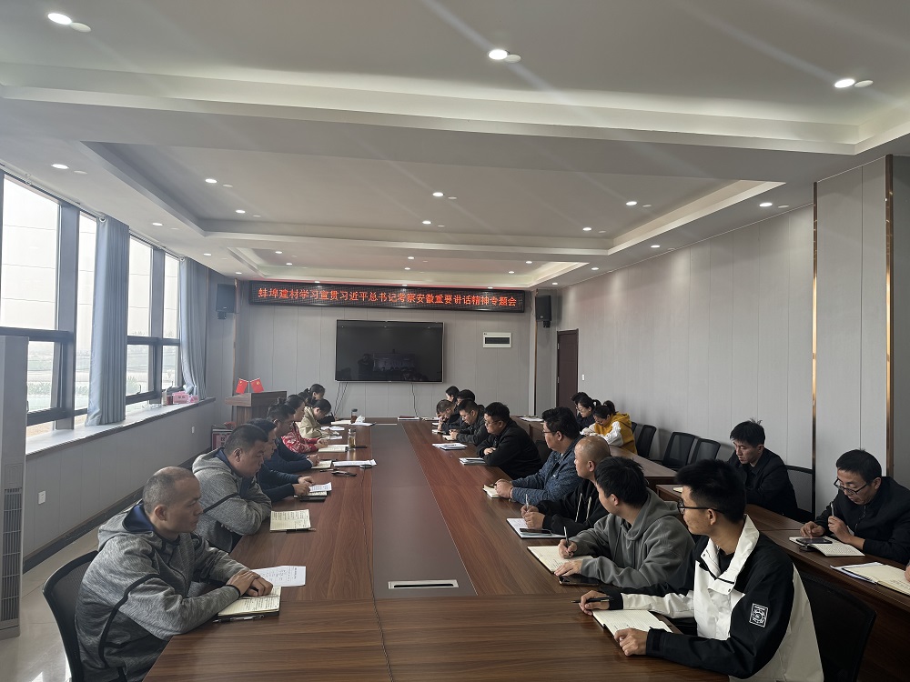 蚌埠建材組織召開(kāi)學(xué)習傳達習近平總書(shū)記考察安徽重要講話(huà)精神專(zhuān)題會(huì ),公司領(lǐng)導班子、中層副職及以上管理人員、部分黨員和青年團員代表參加會(huì )議。會(huì )議要求,各中心、各站點(diǎn)要以學(xué)習習近平總書(shū)記在安徽考察時(shí)的重要講話(huà)精神為契機,將習近平總書(shū)記的講話(huà)精神轉化為實(shí)干擔當的強大動(dòng)力,堅持目標不變、任務(wù)不減,迎難而上,奮發(fā)奮進(jìn),為完成全年目標任務(wù)而努力奮斗。