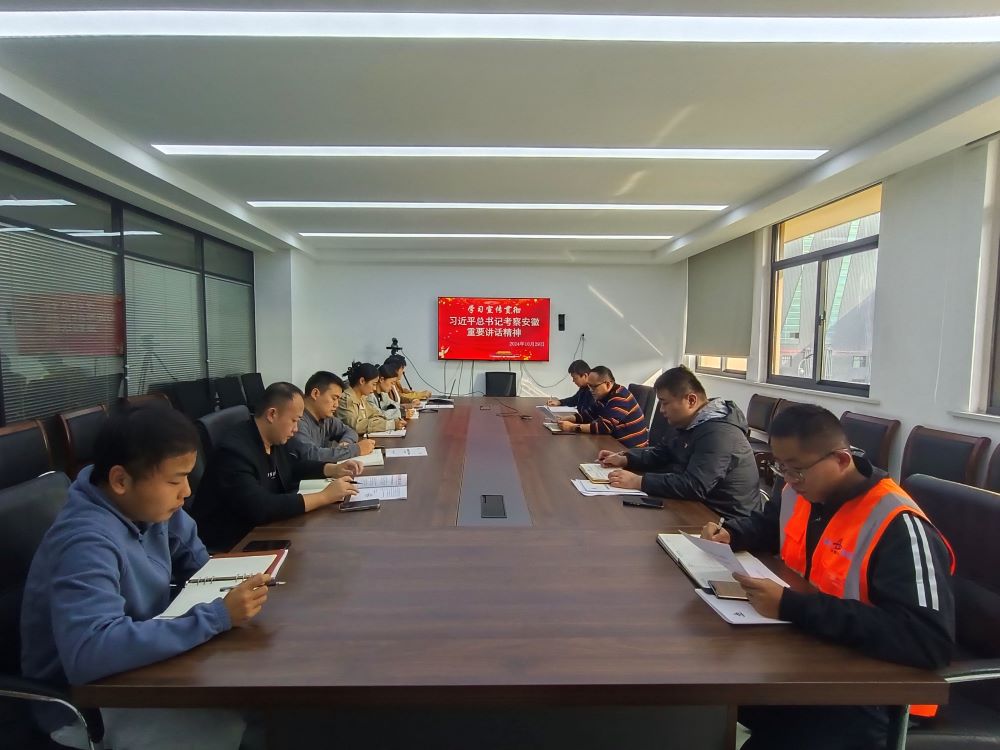 安徽瑞特組織傳達學(xué)習習近平總書(shū)記考察安徽重要講話(huà)精神,全體黨員、各部門(mén)負責人及青年骨干參加。會(huì )議強調,全體員工要深入學(xué)習領(lǐng)會(huì )講話(huà)精神要義,把學(xué)習宣傳貫徹習近平總書(shū)記考察安徽重要講話(huà)精神作為當前和今后一個(gè)時(shí)期的首要政治任務(wù)。一是認真開(kāi)展學(xué)習研討,做到學(xué)深悟透、知行合一;二是抓好宣傳宣講,營(yíng)造濃厚氛圍;三是結合公司實(shí)際,推動(dòng)貫徹落實(shí)。