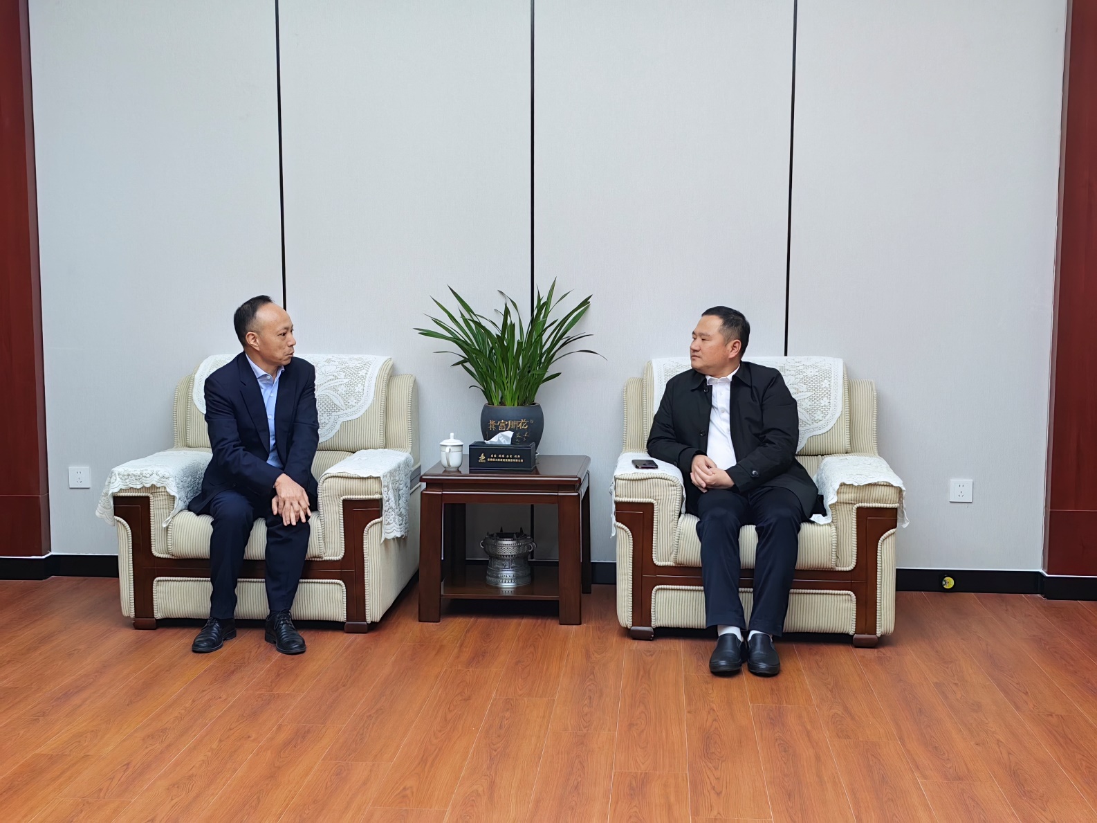 11月27日,浙江永德信科技有限公司董事長(cháng)彭漢平一行到訪(fǎng)建工路港集團,公司黨委書(shū)記、董事長(cháng)錢(qián)葉琳熱情接待并舉行工作會(huì )談。浙江永德信科技有限公司以及建工路港有關(guān)領(lǐng)導和部門(mén)負責同志參加。