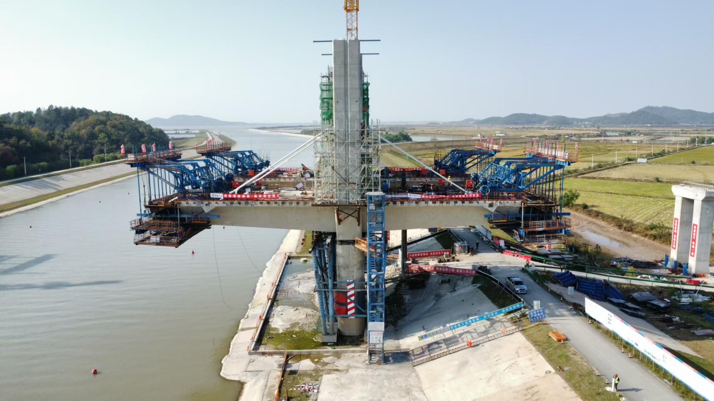 孫瑞曉告訴記者,長(cháng)河特大橋屬于天天高速公路無(wú)為至安慶段10標段施工范圍,該標段起點(diǎn)位于樅陽(yáng)縣官埠橋鎮繼光村,終點(diǎn)位于安慶市宜秀區楊橋鎮,全長(cháng)8.9公里,路基長(cháng)度6.4公里,橋梁共有6座,長(cháng)度2.4公里,包括5座大橋,1座特大橋。當前路基工程已基本結束,長(cháng)河特大橋正在進(jìn)行懸臂澆筑和掛梁施工,預計明年8月進(jìn)行合龍。