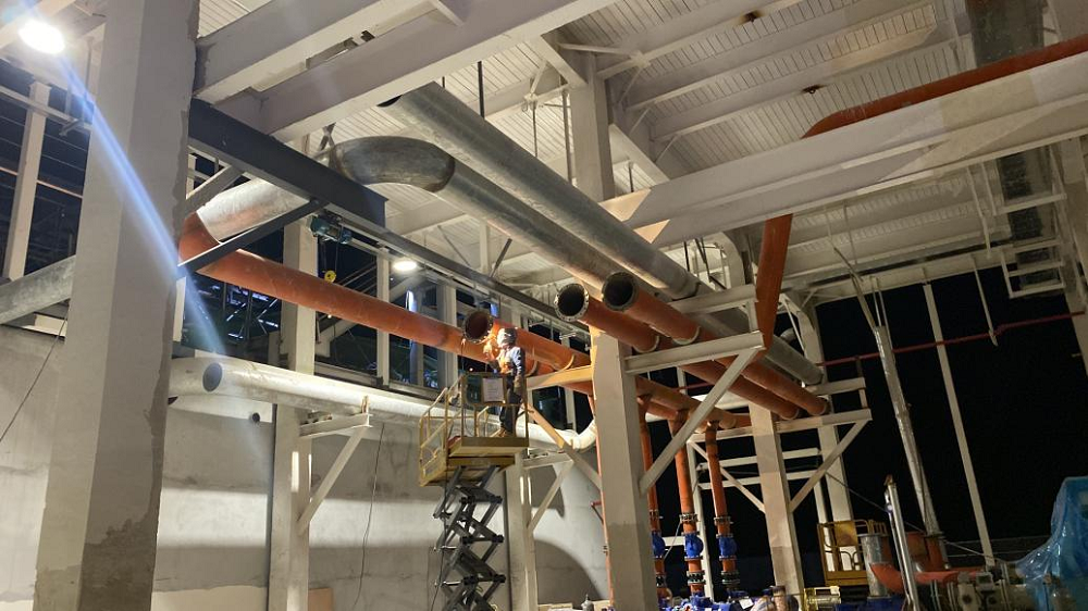 站房一(能源中心)作為整個(gè)廠(chǎng)區的“發(fā)動(dòng)機”,建筑面積雖僅有11000平方米,但單體機電安裝造價(jià)約8000萬(wàn)元,施工內容涵蓋空壓站、污水處理站、高效制冷機房、消防泵房及給水加壓站房等全廠(chǎng)幾乎所有核心“部件”。面對施工工藝復雜、工期緊、標準高且施工過(guò)程中設計變更頻繁、設備供貨周期長(cháng)、資金不到位等多種不利因素,項目部積極想辦法克服困難,采取主動(dòng)對接各方資源,深化設計確認、督促設備批量排產(chǎn)、加快技術(shù)交底完成、倒排施工計劃等一系列有效措施,堅持“搶進(jìn)度、抓質(zhì)量、保安全”核心思想不動(dòng)搖,加班加點(diǎn)推進(jìn)項目建設。截至目前,站房一(能源中心)形象進(jìn)度已完成55%以上,實(shí)現產(chǎn)能過(guò)半,為確保關(guān)鍵合同節點(diǎn)“2025年2月28日公用動(dòng)力系統調試完成,并具備各生產(chǎn)條件”打下堅實(shí)基礎。