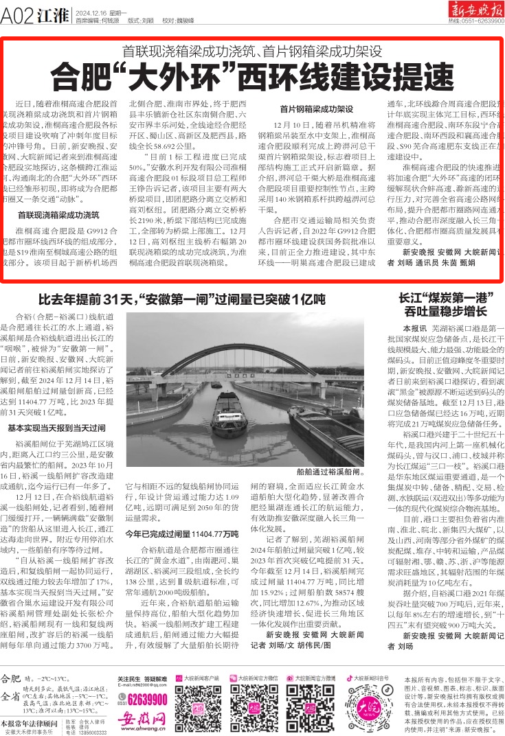 近日,安徽水利承建的淮桐高速合肥段1標段首聯(lián)現澆箱梁成功澆筑,全面吹響“決勝四季度”沖鋒號角,受到安徽日報、新安晚報等主流媒體關(guān)注報道。