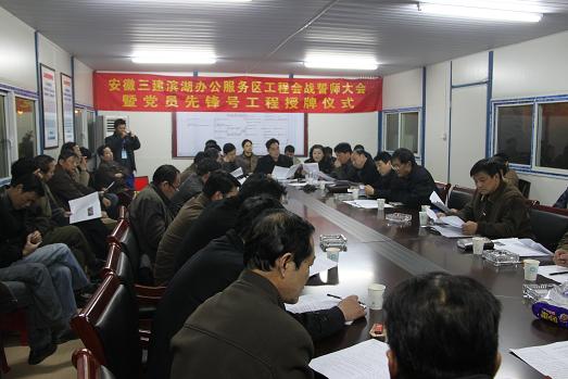 12月8日晚上6時(shí),安徽三建濱湖辦公服務(wù)區工程會(huì )戰誓師大會(huì )在項目現場(chǎng)隆重舉行。該公司十三個(gè)參戰單位黨政領(lǐng)導、有關(guān)部門(mén)負責人和項目全體管理人員、勞務(wù)班組代表參加會(huì )議。安徽三建公司黨委書(shū)記徐曉光、副總經(jīng)理左登宏出席會(huì )議。