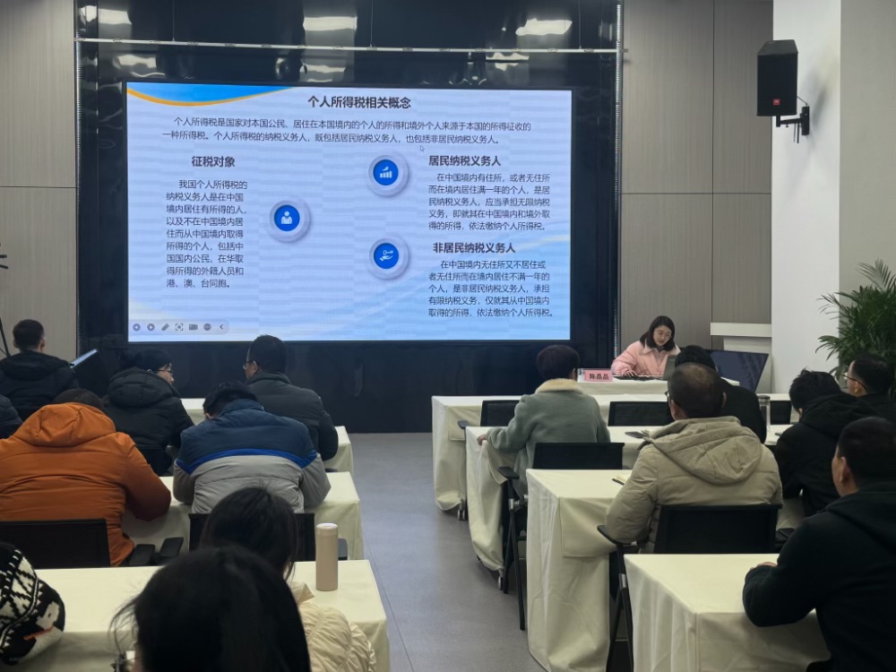 本次培訓旨在介紹與每位員工息息相關(guān)的個(gè)人所得稅業(yè)務(wù)知識。陳晶晶詳細闡述了個(gè)人所得稅的概念、征稅范圍、稅率、計算方法、專(zhuān)項附加扣除及匯算清繳等相關(guān)知識,會(huì )上宣貫了“財政部、稅務(wù)總局關(guān)于在全國范圍實(shí)施個(gè)人養老金個(gè)人所得稅優(yōu)惠政策的公告”(財政部、稅務(wù)總局公告2024年第21號),重點(diǎn)對個(gè)人專(zhuān)項附加扣除常見(jiàn)問(wèn)題進(jìn)行了講解。