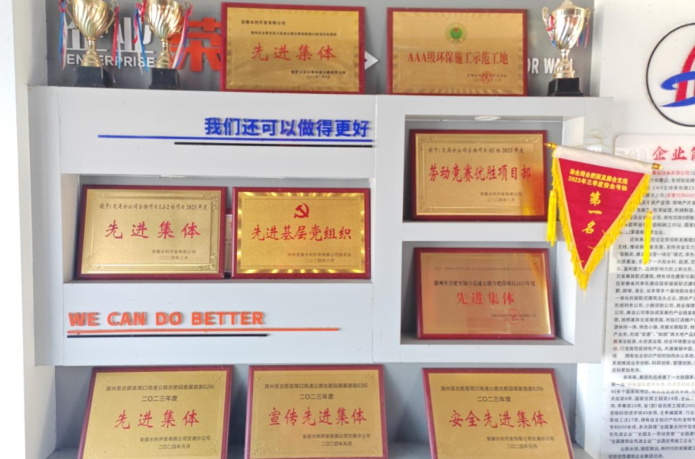 項目先后獲得合肥市交投“2022、2023年度“先進(jìn)集體”榮譽(yù)稱(chēng)號、安徽建工2024上半年“流動(dòng)紅旗”黨組織項目部、安徽水利“先進(jìn)集體、勞動(dòng)競賽優(yōu)勝項目部”“先進(jìn)基層黨組織”等榮譽(yù)稱(chēng)號。