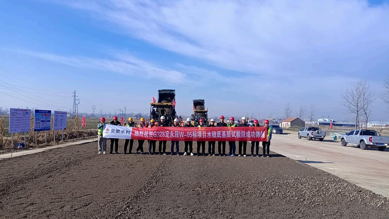 2024年12月29日,安徽水利G328項目W-05標水泥穩定碎石底基層試驗段順利完成鋪設。