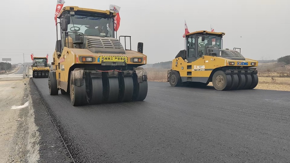 1月3日,建工建投集團G104明光段一級公路改建工程二標段瀝青下面層試驗段順利完成鋪筑。
