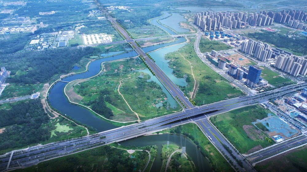 錦繡大道(上海路-山東路)工程為新建項目,西起上海路、東至山東路,全長(cháng)約1.5公里,規劃為城市快速路,規劃紅線(xiàn)寬60米。本次僅實(shí)施地面道路部分,實(shí)施斷面寬度52m,設計速度60km/h。主要建設內容有道路、橋梁、排水、綠化、照明、交通、供電等附屬工程。采用三跨(3×30m)簡(jiǎn)支箱梁橋方式跨越十五里河。