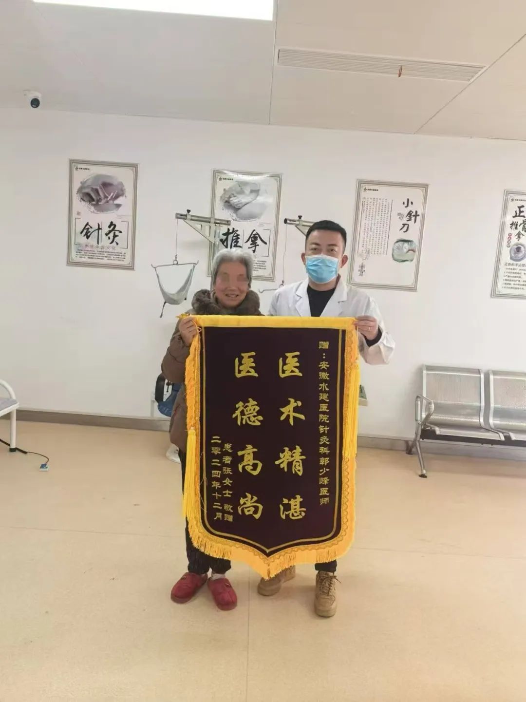 張女士因腰痛持續兩周,活動(dòng)受限,慕名前來(lái)我院尋求專(zhuān)業(yè)治療。針推康復科的郭技師為她制定了針刺、推拿、中藥熏蒸、針刀松解術(shù)等綜合治療方案。經(jīng)過(guò)一段時(shí)間治療,張女士的腰痛明顯緩解,行動(dòng)自如。她對治療效果非常滿(mǎn)意,特意送來(lái)一面錦旗,以表達對郭技師深深的謝意。