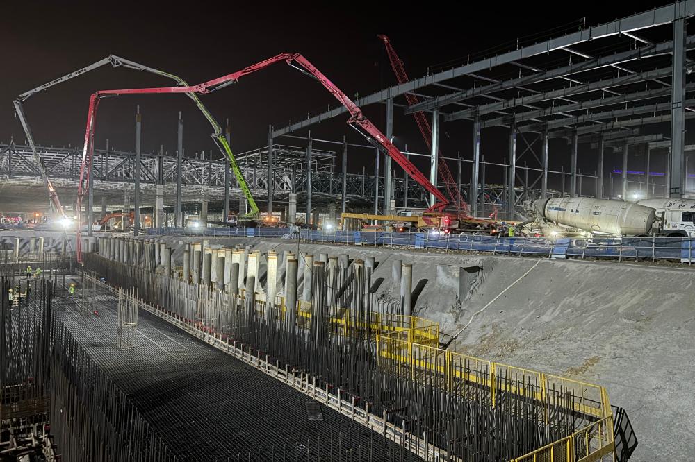 2024年9月8日22時(shí)35分,經(jīng)過(guò)28小時(shí)的持續鏖戰,大眾產(chǎn)業(yè)園項目 13144方大體量混凝土澆筑任務(wù),比預定計劃提前8小時(shí)完成,本次澆筑投入攪拌車(chē)140輛,泵車(chē)13臺,是建工建材在合肥地區,體量最大、用時(shí)最短的一次澆筑任務(wù)。