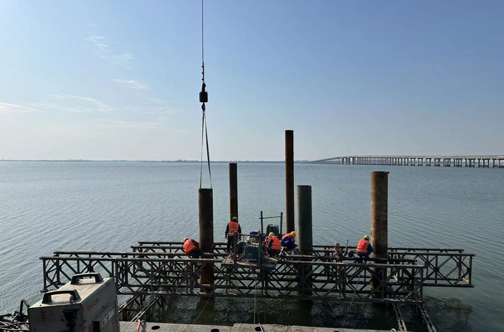 2 月 6 日,城東湖西岸拌合站鋼筋大棚基礎開(kāi)挖、上料口模板拆除工作順利完成,鋼筋大棚材料進(jìn)場(chǎng);城東湖兩岸鋼棧橋橋面板鋪設穩步推進(jìn),鋼管樁打設有序開(kāi)展,施工現場(chǎng)處處洋溢著(zhù)奮進(jìn)的活力。