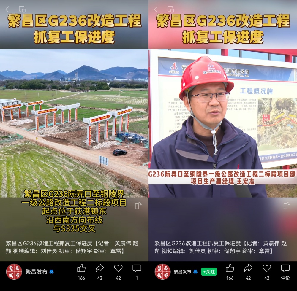 春節假期剛過(guò),由建工建投集團承建的繁昌區G236項目已全面復工復產(chǎn),迅速掀起大干快上“新”熱潮?!胺辈l(fā)布”視頻號、“繁昌新聞網(wǎng)”深入一線(xiàn)展開(kāi)報道。