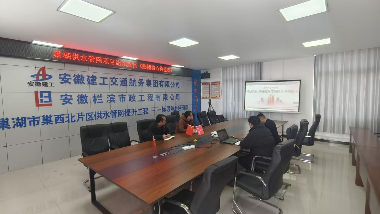 巢湖供水管道網(wǎng)項目召開(kāi)專(zhuān)題會(huì )議,集中學(xué)習了集團發(fā)布的《關(guān)于開(kāi)展安徽建工集團核心價(jià)值觀(guān)學(xué)習宣貫的通知》,鮮明解讀了“誠信共贏(yíng) 卓越創(chuàng )新 忠誠擔當 敬業(yè)清正”核心要義。