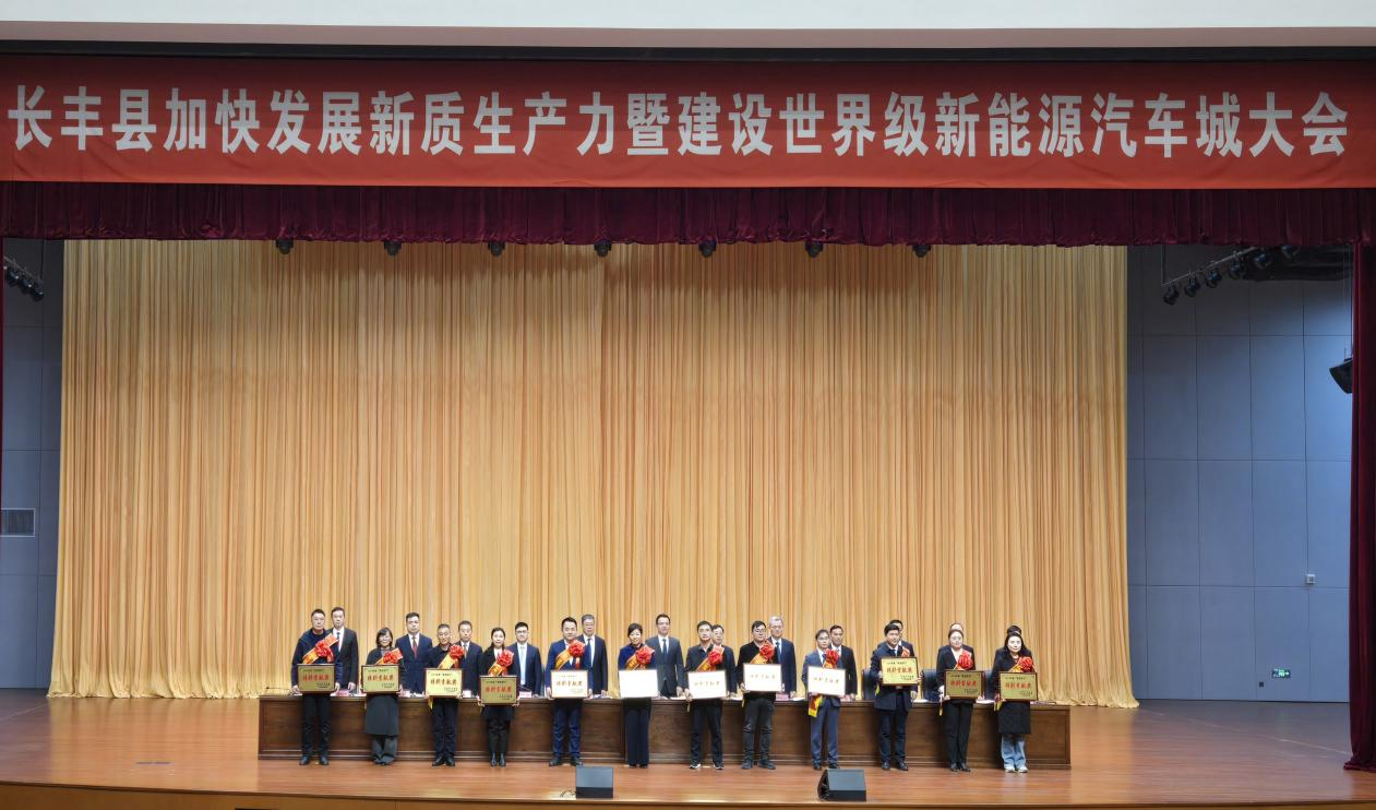 2月17日上午,長(cháng)豐縣加快發(fā)展新質(zhì)生產(chǎn)力暨建設世界級新能源汽車(chē)城大會(huì )召開(kāi)。會(huì )上,對為地方經(jīng)濟社會(huì )發(fā)展做出積極貢獻的企業(yè)進(jìn)行了隆重表彰,安徽建工集團憑借突出貢獻,被授予“‘雙招雙引’特別貢獻獎” 與 “建筑業(yè)特別貢獻獎” 兩項殊榮。