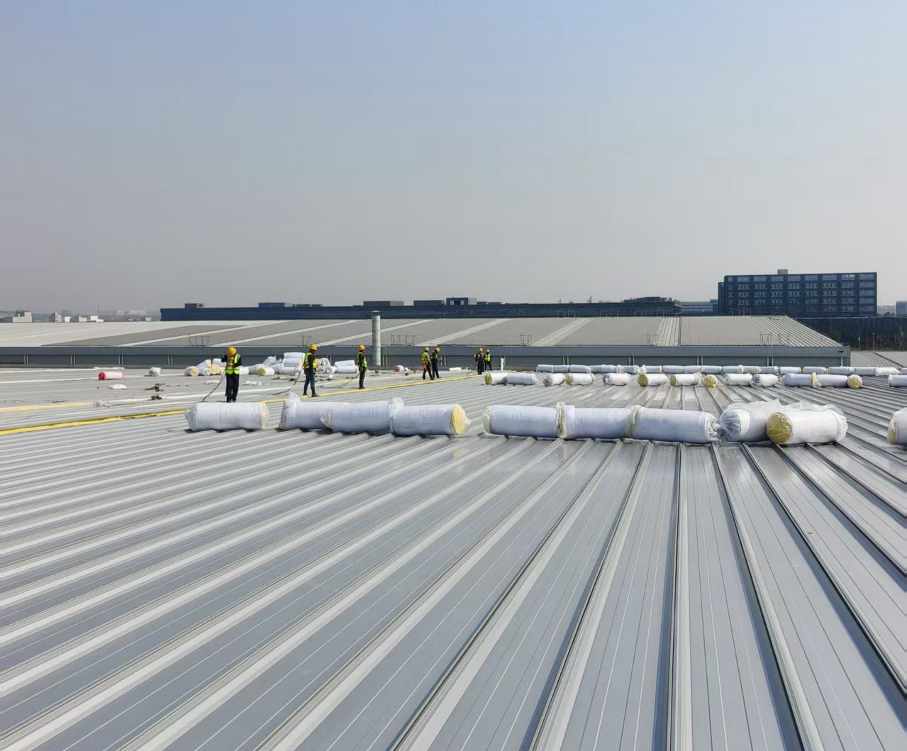 春節假期結束后,項目全力推進(jìn)復工復產(chǎn),搶抓晴好天氣,爭分奪秒追趕工期,馬不停蹄推進(jìn)項目進(jìn)度。復工伊始,項目團隊便憑借高效的執行力和嚴謹的工作態(tài)度,有條不紊地完成了鋼結構屋面鋼絲網(wǎng)格的拉設工作,為本次屋面板的鋪設筑牢了根基。