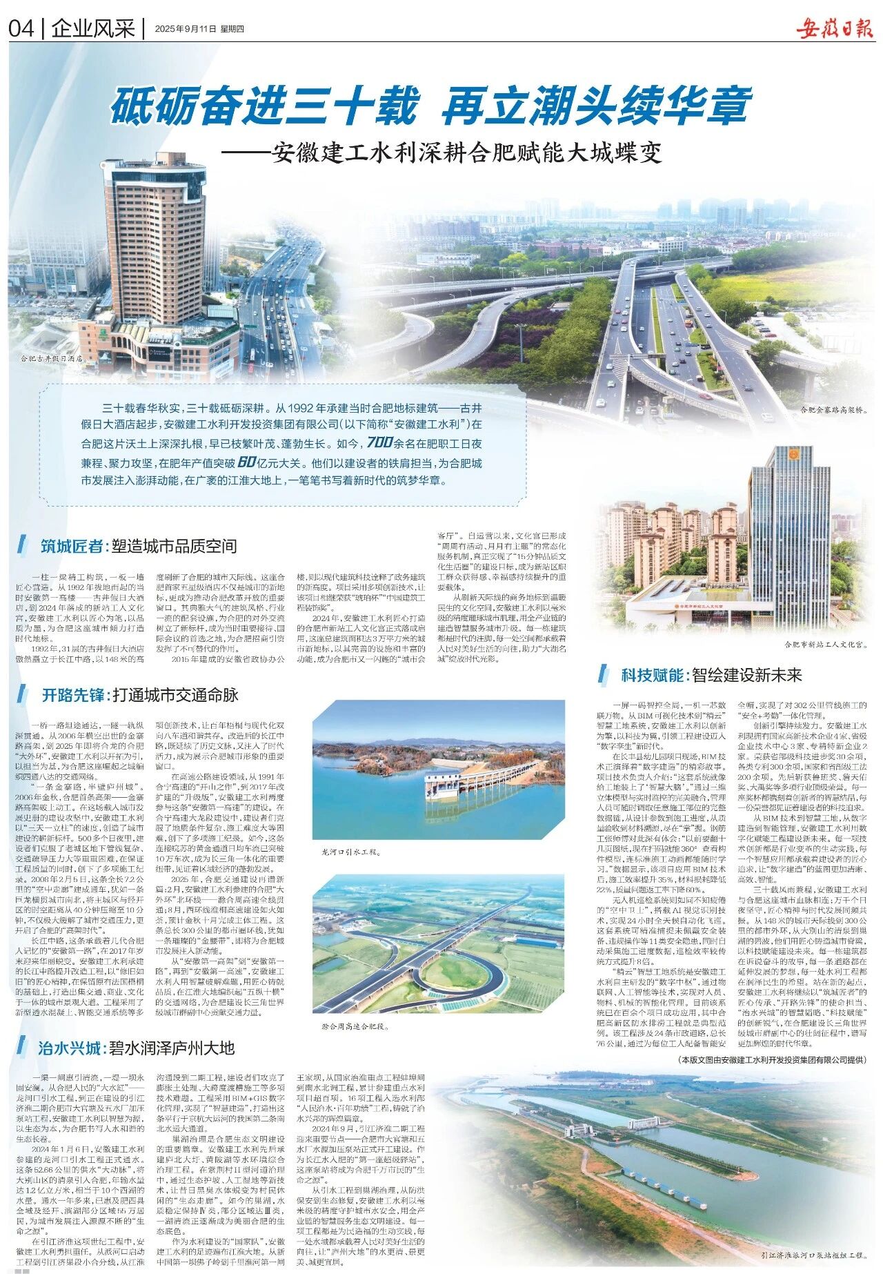 【安徽日報整版報道】砥礪奮進(jìn)三十載 再立潮頭續華章——安徽建工水利深耕合肥賦能大城蝶變