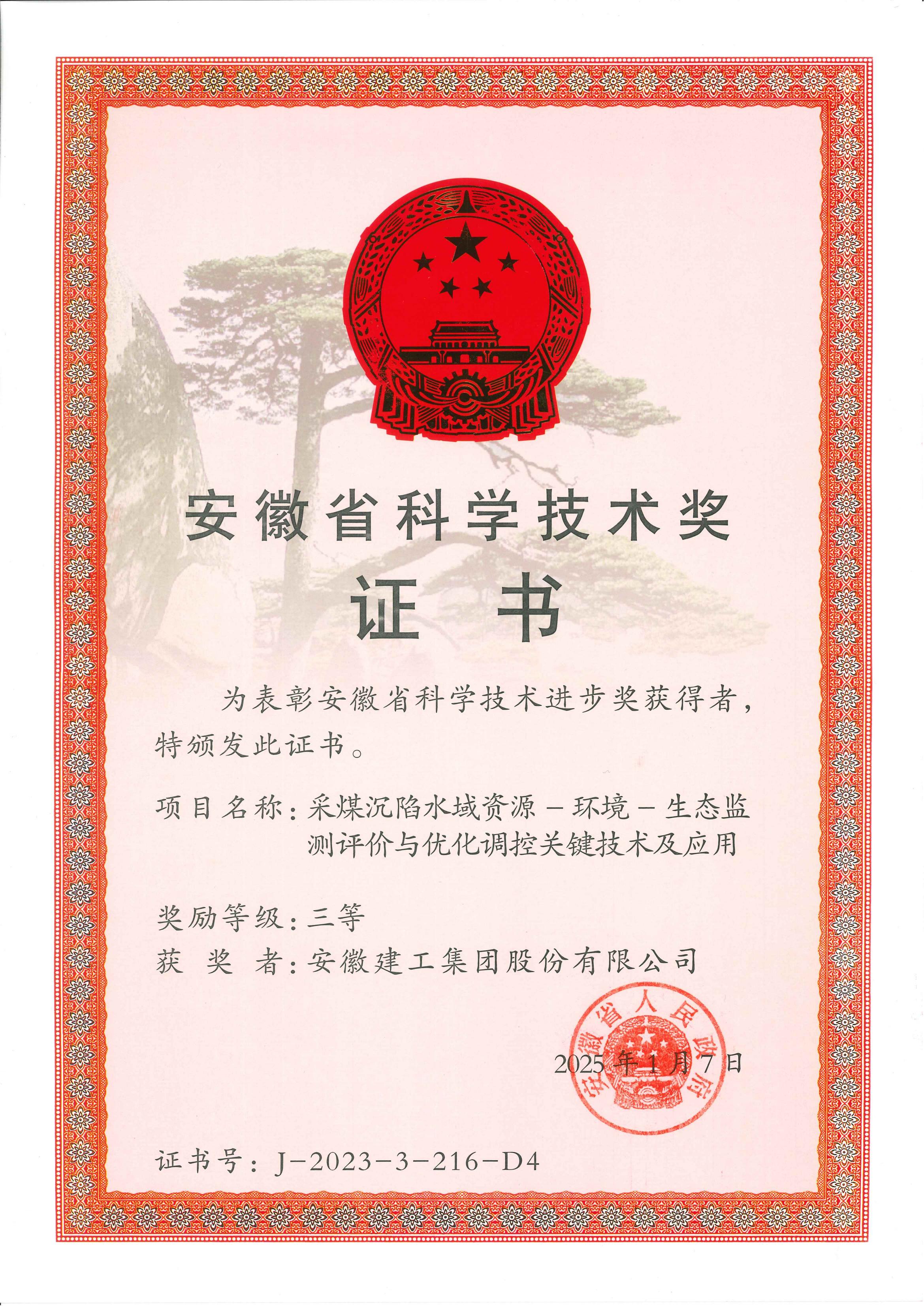 榮獲安徽省科學(xué)技術(shù)獎三等獎