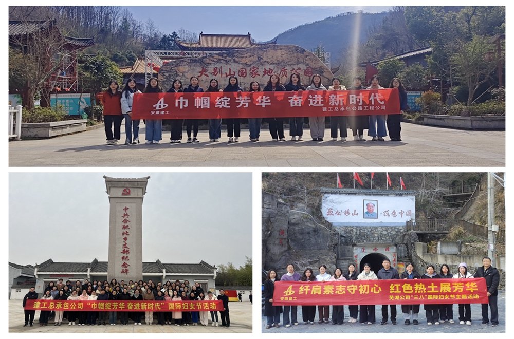 追尋紅色足跡,傳承革命精神。公司機關(guān)、公路工程公司等單位開(kāi)展“巾幗綻芳華 奮進(jìn)新時(shí)代”“纖肩素志守初心 紅色熱土展芳華”等主題活動(dòng),組織女職工前往長(cháng)豐縣北鄉黨支部紀念館、大別山國家地質(zhì)公園、績(jì)溪龍川、大會(huì )山革命教育基地、馬郢史館等地開(kāi)展紅色教育活動(dòng),重溫紅色記憶、感悟革命精神、接受黨性教育。