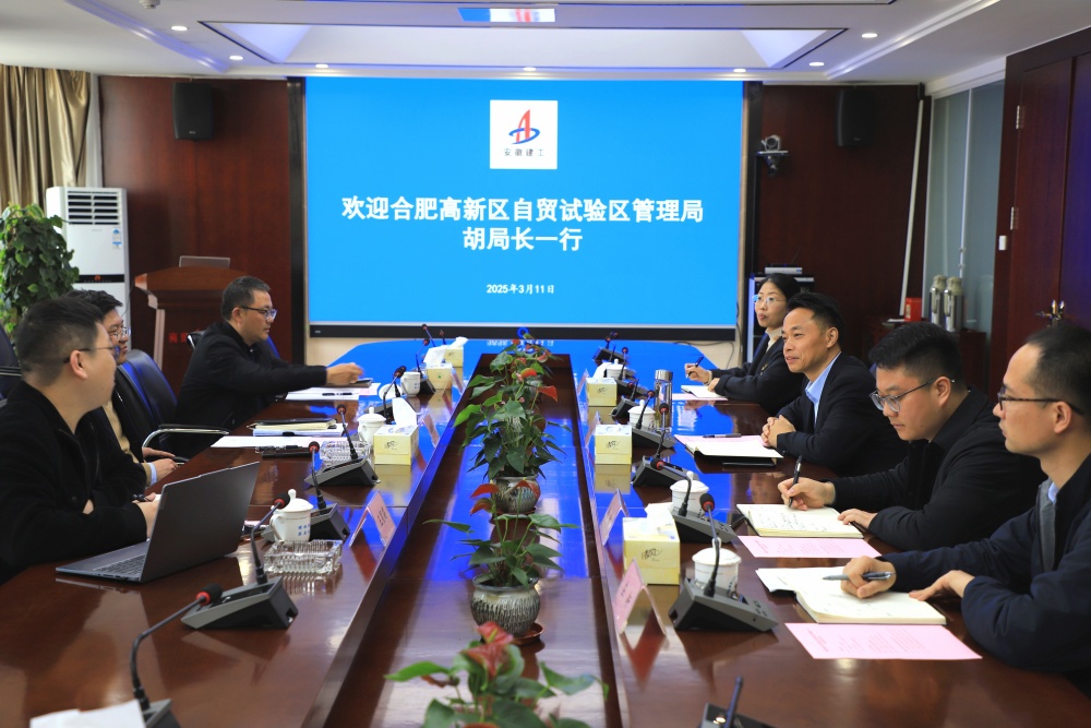 3月11日上午,合肥高新區自貿試驗區管理局局長(cháng)胡德重一行到訪(fǎng)建工商貿物流,公司黨委副書(shū)記、總經(jīng)理張俊熱情接待并舉行工作會(huì )談。