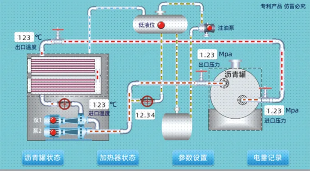 環(huán)保型電磁瀝青智能加熱設備由公司自主研發(fā),革新傳統燃油加熱模式。瀝青電磁智能加熱系統通過(guò)電磁加熱元件對導熱油管路加熱,加熱后的導熱油再對儲存罐內的瀝青進(jìn)行加熱,并通過(guò)智能化控制加熱溫度、加熱時(shí)間,實(shí)現了瀝青加熱的智能化作業(yè)和數字化管理。