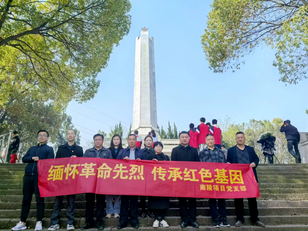 清明節到來(lái)之際,南陵項目黨支部組織全體黨員干部前往南陵李家發(fā)革命烈士紀念碑開(kāi)展祭掃活動(dòng)。