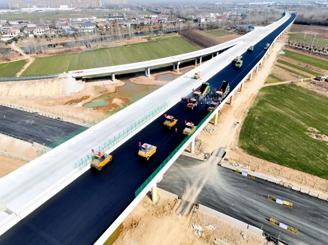 在徐淮阜高速淮北段,項目錨定7月通車(chē)目標,堅持節假日施工“不斷檔”,順利完成全線(xiàn)水穩攤鋪施工,正加速推進(jìn)瀝青路面施工。