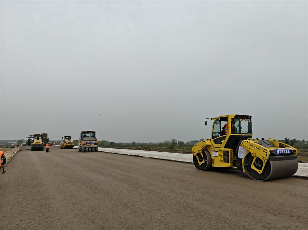 在定遠G328項目建設現場(chǎng),攪拌機、攤鋪機、挖掘機、裝載機等重型機械正忙碌作業(yè)。項目前期交地部分已完成4.6公里路基交驗工作,計劃5月中上旬完成全部路基交驗工作;水穩底基層已覆蓋完成3.8公里,目前水穩下基層正大面積施工,橋梁工程正進(jìn)行下部結構施工。自項目啟動(dòng)以來(lái),項目團隊積極調配人力、物力,工程技術(shù)人員日夜堅守崗位,全力推進(jìn)項目建設。