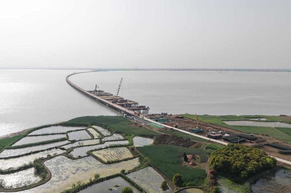 4月2日和8日,城東湖、城西湖兩座鋼便橋相繼合龍,為后續項目建設打通了“任督二脈”,標志著(zhù)項目物資運輸和機械調度的“生命線(xiàn)”全線(xiàn)貫通,特大橋將正式進(jìn)入施工建設階段。