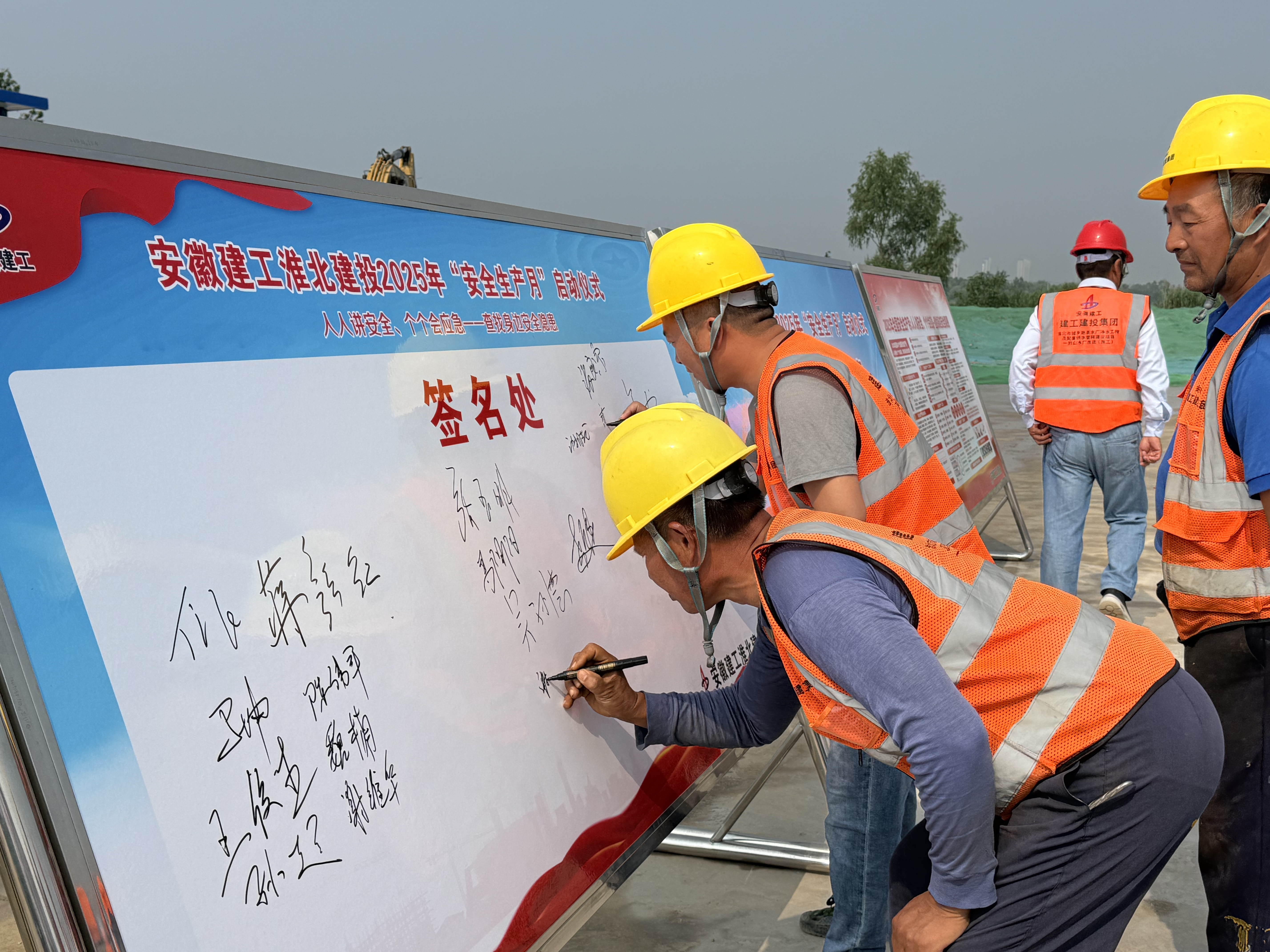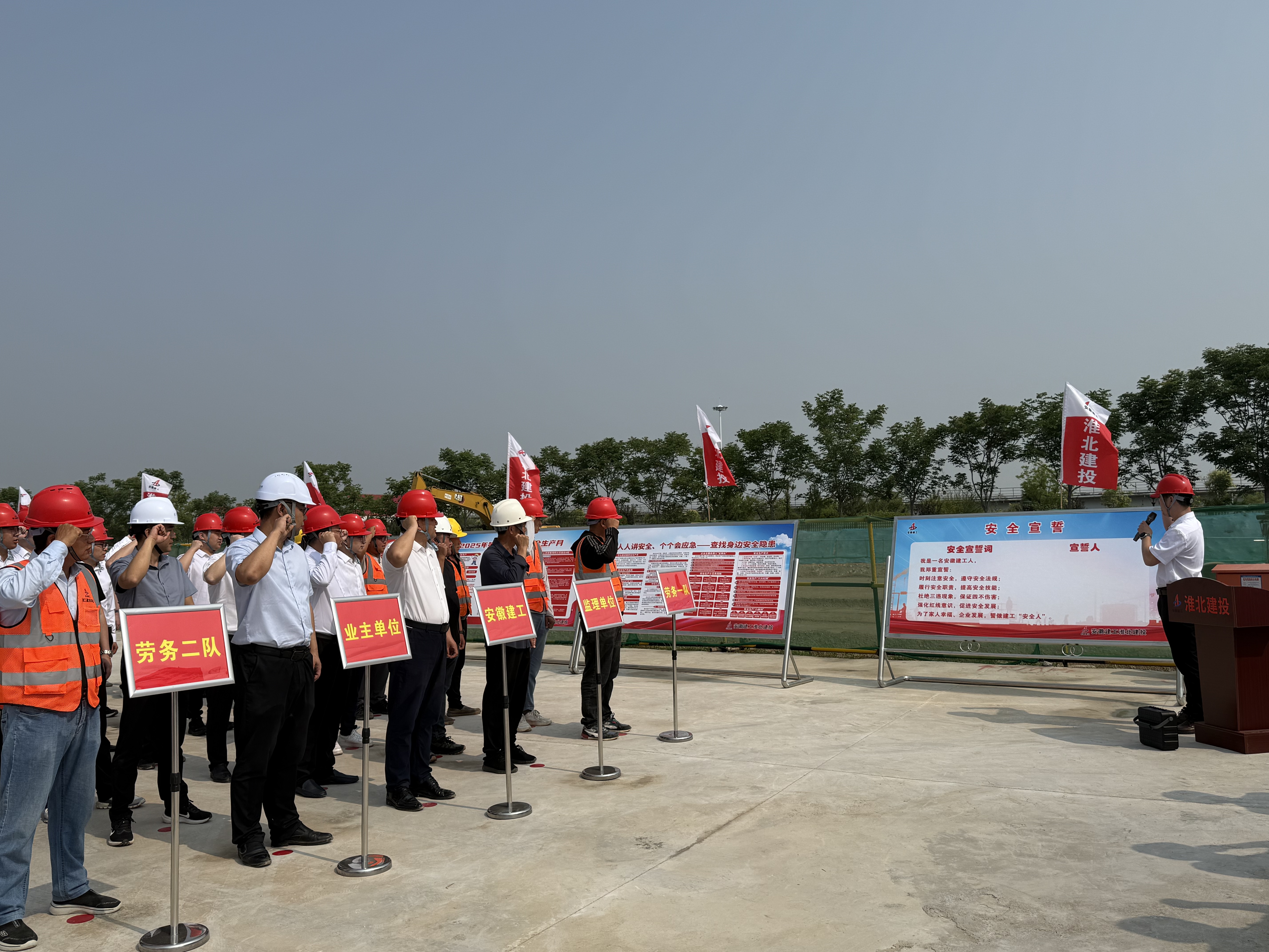 6月3日上午,安徽建工淮北建投2025年“安全生產(chǎn)月”活動(dòng)啟動(dòng)儀式暨現場(chǎng)觀(guān)摩會(huì )在淮北市烈山水廠(chǎng)項目現場(chǎng)舉行。安徽建工淮北建投黨委書(shū)記、董事長(cháng)、總經(jīng)理張玉明宣布活動(dòng)正式啟動(dòng),并作動(dòng)員部署講話(huà),公司黨委委員、副總經(jīng)理朱成亮帶領(lǐng)全體人員進(jìn)行安全宣誓。公司領(lǐng)導班子、機關(guān)員工、業(yè)主和監理單位、勞務(wù)隊伍、項目經(jīng)理等50余人參加儀式。