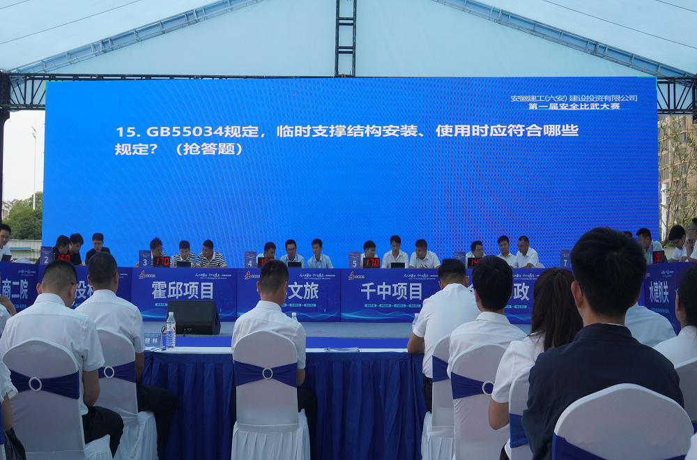 本次競賽來(lái)自公司機關(guān)、所屬單位及項目部共8支參賽隊伍,通過(guò)限時(shí)快答、風(fēng)險搶答、隱患查找等6個(gè)環(huán)節,全面考察安全生產(chǎn)法律法規、風(fēng)險辨識、應急處置、重大事故隱患判定等多個(gè)分項。經(jīng)過(guò)精彩角逐,來(lái)自葉集項目代表隊斬獲一等獎,六安建投機關(guān)、六安水建機關(guān)和電商二院項目部代表隊分別獲二、三等獎。