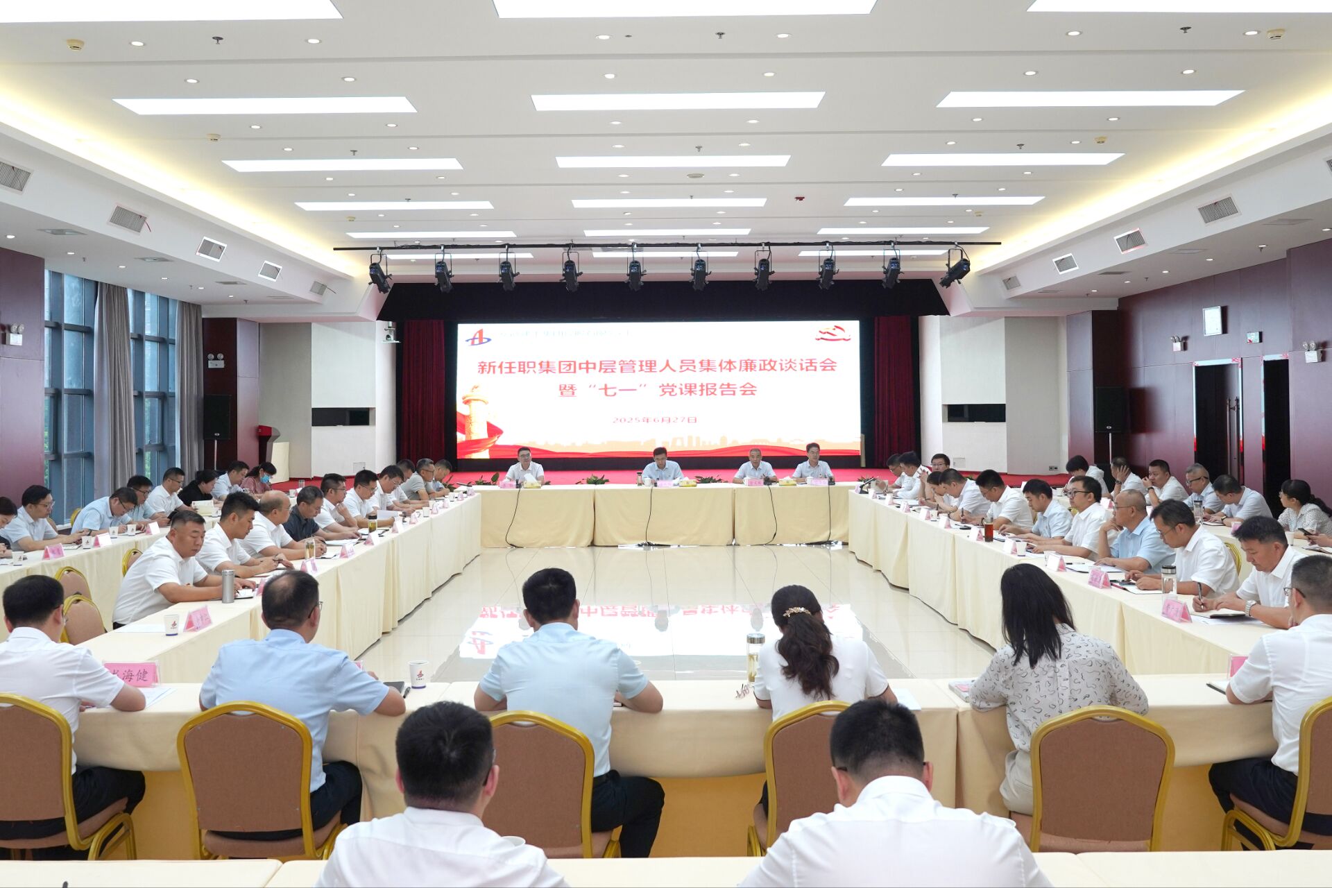 集團召開(kāi)新任職中層管理人員集體廉政談話(huà)會(huì )暨“七一”黨課報告會(huì )