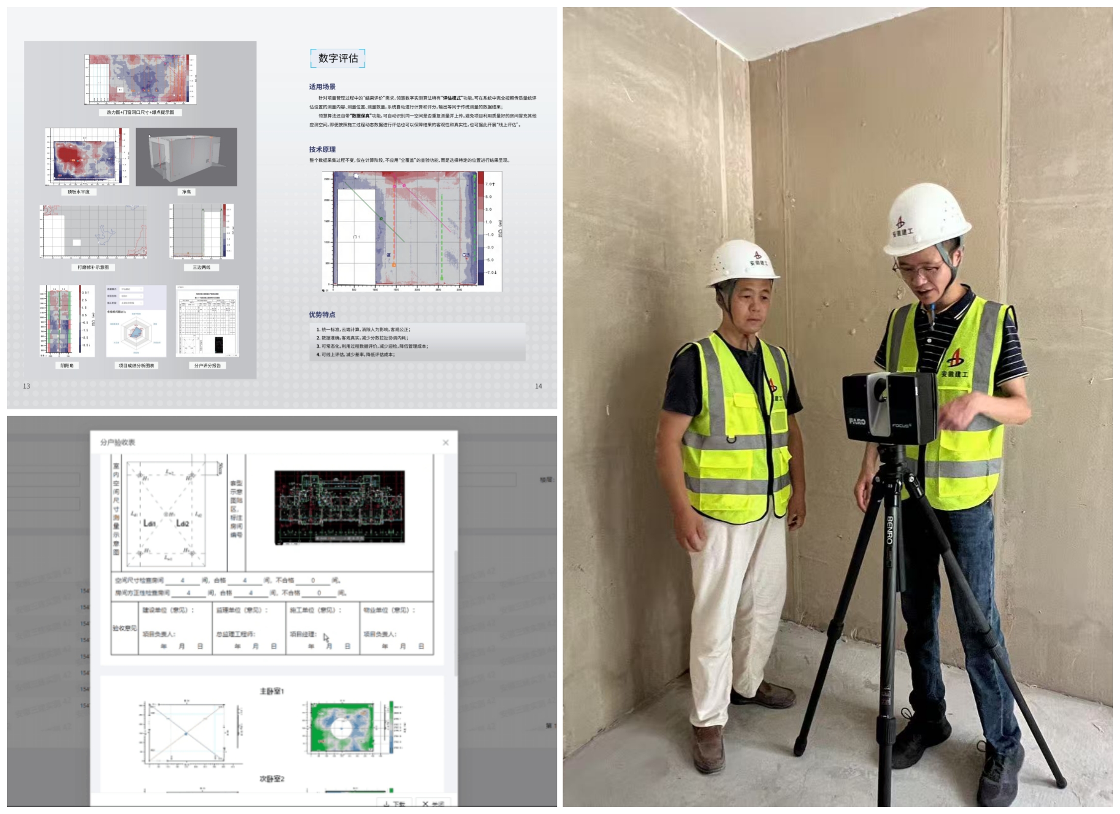 在合肥新西站安置點(diǎn)項目現場(chǎng),操作人員通過(guò)移動(dòng)終端操控實(shí)測實(shí)量機器人,僅需3-5分鐘即可完成單戶(hù)多房間全屋掃描。機器人搭載的三維激光掃描儀以每秒200萬(wàn)點(diǎn)速度捕捉空間數據,自動(dòng)執行墻面平整度、垂直度、陰陽(yáng)角方正度等測量任務(wù),實(shí)時(shí)生成多維度數據報告,表格可按分戶(hù)驗收格式自動(dòng)導出。相較傳統2人45分鐘(含20分鐘人工制表)的作業(yè)模式,效率提升近10倍,且規避了人為測量誤差。實(shí)測實(shí)量機器人的應用,既減輕了項目人員測量工作負擔,又提高了分戶(hù)驗收數據準確性,提升住宅工程交付效率,還可以減少中間移交糾紛,實(shí)現測量數據貫穿驗收、整改、移交等各階段,數據可溯源、可共享、可重復利用,杜絕人為干擾,有效增強工程管理透明度。