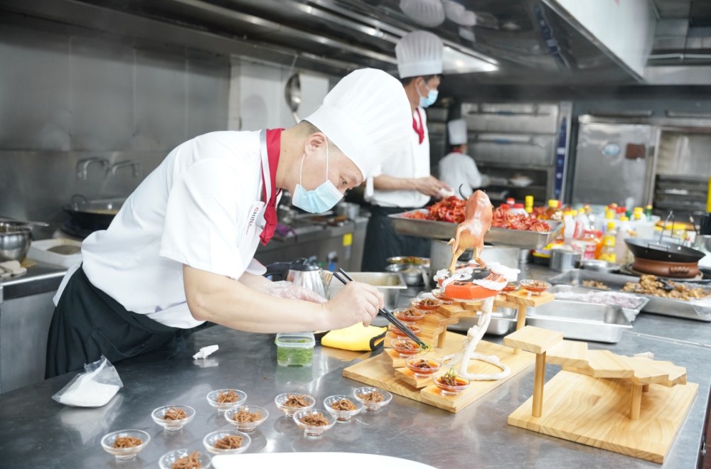 本次大賽以“廚間展絕技 匠心筑‘味’來(lái)”為主題,采用“酒店組+團餐組”雙賽道模式,涵蓋了中式烹調、傳統面點(diǎn)、創(chuàng )意融合等多個(gè)項目,從食材選擇、刀工處理、火候掌控到菜品造型、口味創(chuàng )新,全方位考驗著(zhù)廚師們的專(zhuān)業(yè)素養和創(chuàng )新能力,實(shí)現“以賽促學(xué)、以賽促練”的最終目的。