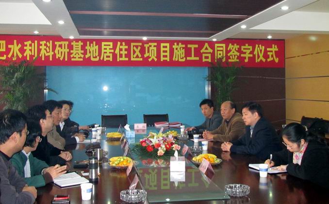 2010年11月16日下午,淮委合肥水利科研基地居住區項目合同簽約儀式順利舉行。該項目總建筑面積5.79萬(wàn)平方米,合同造價(jià)8352萬(wàn)元,是淮委在合肥設立的新基地。簽約儀式上,國內工程公司總經(jīng)理陳傳文表示將把該項目作為與淮委合作的新起點(diǎn),通過(guò)淮委合肥科研基地合肥項目的建設,打造安徽建工在合肥又一精品工程,確保該項目創(chuàng )建為“安全、質(zhì)量”雙示范工程。