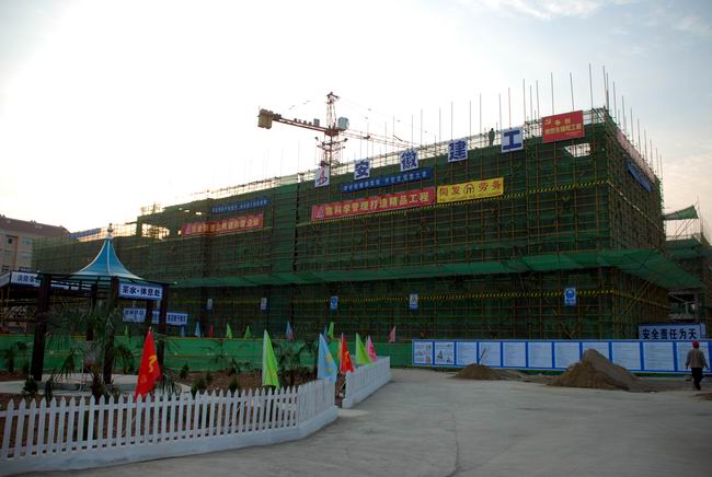 該項目是國內公司2010年度爭創(chuàng )省、市安全質(zhì)量標準化示范工地之一。在項目的創(chuàng )建過(guò)程中,國內公司總經(jīng)理陳傳文、黨總支書(shū)記陳月琴曾多次親臨施工現場(chǎng)指導現場(chǎng)文明施工和項目文化建設。公司對該項目健全了管理組織,制定了安全生產(chǎn)管理制度,加大了安全生產(chǎn)投入,選派二名專(zhuān)職安全員駐點(diǎn)管理,確保安全技術(shù)措施落到實(shí)處。同時(shí),進(jìn)一步加大了施工組織設計和專(zhuān)項施工方案的審核工作,加強了施工現場(chǎng)危險性管理和過(guò)程監控,保證了合同管理目標的實(shí)現;公司黨總支在該項目上開(kāi)展爭創(chuàng )黨員先鋒號工程活動(dòng),有力地促進(jìn)了雙文明示范的創(chuàng )建工作。2010年11月17日,該項目以88.9分的成績(jì)順利通過(guò)市安全質(zhì)量標準化示范工地驗收。