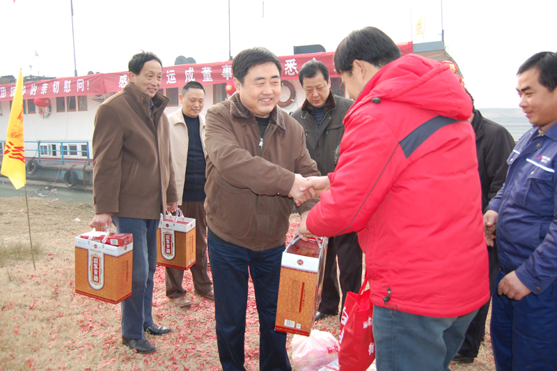 上午八時(shí)三十分,胡董事長(cháng)一行來(lái)到皖工宿02號船舶會(huì )議室,同節日期間加班的船員一一握手,詳細了解了節日期間的工程進(jìn)展和工程處施工運行情況,并詢(xún)問(wèn)了值班人員的工作和生活情況。胡董事長(cháng)親切地說(shuō):大家好!今天是新春佳節,同志們堅守在工作崗位上,我代表集團公司向大家表示節日的慰問(wèn),向大家拜年!并向你們的親人表示親切的慰問(wèn),祝大家春節愉快,闔家歡樂(lè ),工作進(jìn)步。大家的工作非常辛苦,在新春佳節之際,同志們恪盡職守、任勞任怨的精神令人感動(dòng)!希望你們今后再接再厲,共創(chuàng )疏浚事業(yè)的輝煌!