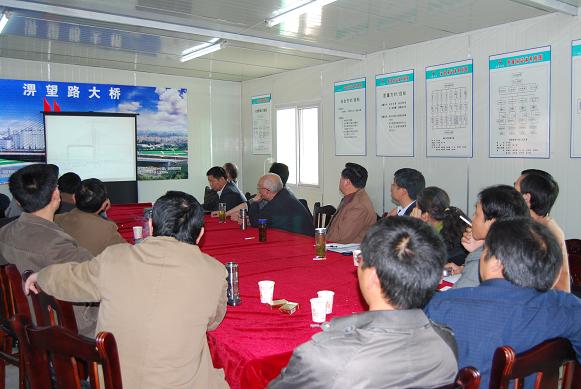 鄭總和戴總對項目部克服場(chǎng)地限制、結構復雜、技術(shù)難度大等多種不利因素,取得如此的成績(jì)感到高興,尤其是看到金桃大橋的雄偉英姿甚感欣慰;同時(shí)對項目部積極探索和鉆研技術(shù)難點(diǎn)的精神表示贊賞。并對兩項目下一步施工、質(zhì)量技術(shù)管理工作提出要求,勉勵項目部依靠科學(xué)技術(shù)的支撐,進(jìn)行方案的優(yōu)化,保證安全質(zhì)量,降低工程成本,提高工程的經(jīng)濟和社會(huì )效益,進(jìn)一步結合深入學(xué)習實(shí)踐科學(xué)發(fā)展觀(guān),繼續開(kāi)展技術(shù)的開(kāi)發(fā)挖掘,進(jìn)行技術(shù)的集成創(chuàng )新,研究、提煉項目工法和專(zhuān)利,為集團公司技術(shù)創(chuàng )新多做工作,以增強集團公司的核心競爭力。