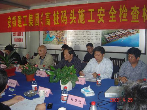 合肥港項目部經(jīng)理向與會(huì )人員匯報了合肥港的概況、施工進(jìn)度、示范工程實(shí)施情況等。路港公司副總經(jīng)理張瓊對合肥港綜合碼頭一期工程創(chuàng )建過(guò)程進(jìn)行匯報。郭道真介紹了《高樁碼頭施工安全檢查標準》起草情況,肯定了合肥港項目的管理水平和創(chuàng )建工作。