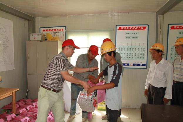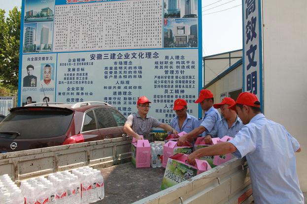 今年7月份以來(lái),受副熱帶高壓影響,我省天氣晴熱,合肥地區持續高溫。為緊密?chē)@高溫時(shí)期工作重點(diǎn),積極配合施工生產(chǎn),做好高溫時(shí)期的安全生產(chǎn)工作,三建公司團委在8月14日組織青年志愿者,分別前往合肥市七中搬遷工程、中國科學(xué)技術(shù)大學(xué)研發(fā)試驗樓工程、力高共和城傾城水鄉西四期工程等三個(gè)項目部,開(kāi)展“1+1”志愿服務(wù)活動(dòng),即以一線(xiàn)班組農民工為服務(wù)對象,開(kāi)展一次高溫安全教育,進(jìn)行一次防暑慰問(wèn)。同時(shí),號召所屬團支部、直屬項目部組織志愿者,結合各單位、各項目部工作實(shí)際,積極開(kāi)展“1+1”志愿服務(wù)活動(dòng)。