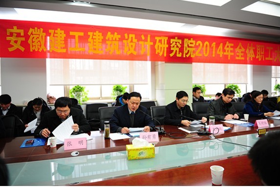 會(huì )上,常務(wù)副院長(cháng)孫有勇作了題為《開(kāi)拓市場(chǎng)、艱苦創(chuàng )業(yè)、努力實(shí)現建工設計院快速健康發(fā)展》的工作報告?!秷蟾妗啡婵偨Y了建工設計院2013年工作,2013年,建工設計院正式開(kāi)門(mén)營(yíng)業(yè),簽訂合同額比海外分院去年同期增長(cháng)45%,全面超額完成集團下達的營(yíng)業(yè)收入、利潤總額等指標,基本搭建了企業(yè)運營(yíng)體系,黨建和精神文明建設穩步推進(jìn),實(shí)現了“開(kāi)門(mén)紅”?!秷蟾妗房陀^(guān)分析了2014年企業(yè)面臨的發(fā)展形勢,提出了2014年發(fā)展目標和工作思路,研究部署了2014年重點(diǎn)工作:切實(shí)履行特級資質(zhì)設計版塊的維護職能;研究制定企業(yè)發(fā)展規劃;以經(jīng)營(yíng)為龍頭,全力開(kāi)拓市場(chǎng);整合資源,擴大生產(chǎn),實(shí)現跨越發(fā)展;加強企業(yè)管理,提升管理水平;進(jìn)一步加強黨建和企業(yè)文化建設?!秷蟾妗诽栒偃w職工,統一思想,堅定信心,攻堅克難,開(kāi)拓創(chuàng )新,為圓滿(mǎn)完成2014年目標任務(wù)而努力奮斗。