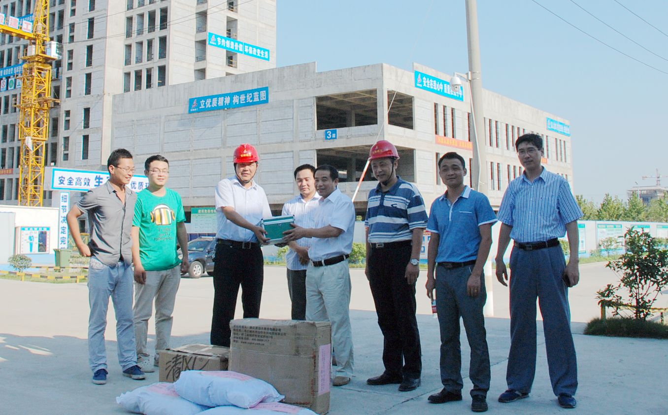 炎炎夏日,高溫酷暑,7月23日起,公司總經(jīng)理陳傳文、黨委書(shū)記徐文聯(lián)、黨委副書(shū)記、工會(huì )主席江萍等公司領(lǐng)導先后來(lái)到安徽省城鄉規劃建設大廈、明光市花園路棚改小區等工程項目,親切慰問(wèn)了一線(xiàn)施工人員,并為他們送去醫用急救箱、防暑、解暑等生活用品。至此,工程公司2014夏季送清涼活動(dòng)正式拉開(kāi)帷幕。