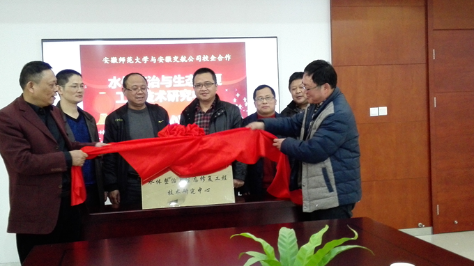 2016年1月2日,安徽省交通航務(wù)工程有限公司與安徽師范大學(xué)在合肥舉行“水體整治與生態(tài)修復工程技術(shù)研究中心”成立揭牌儀式。安師大環(huán)境學(xué)院院長(cháng)趙廣超、院長(cháng)助理伍永鋼及段文松副教授,安徽交航董事長(cháng)、黨委書(shū)記、總經(jīng)理李世龍,副總經(jīng)理方申柱、劉朝發(fā),總工辦副主任衛邦齊等參加。