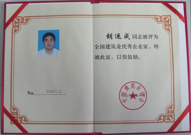 2009年12月15日,“全國建筑業(yè)先進(jìn)企業(yè)、全國建筑業(yè)優(yōu)秀企業(yè)家、全國優(yōu)秀建造師經(jīng)驗交流暨表彰大會(huì )”在北京召開(kāi)。會(huì )上傳來(lái)喜訊:安徽建工集團有限公司榮獲“全國建筑業(yè)先進(jìn)企業(yè)”榮譽(yù)稱(chēng)號,集團公司董事長(cháng)、總經(jīng)理胡運成當選為“全國建筑業(yè)優(yōu)秀企業(yè)家”。