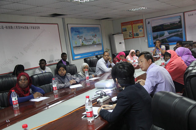 項目部首先向桑給巴爾客人介紹了公司基本情況以及郎溪路四標項目的概況、工程質(zhì)量、進(jìn)度、安全文明管理等工作,隨后去施工現場(chǎng)進(jìn)行了觀(guān)摩。